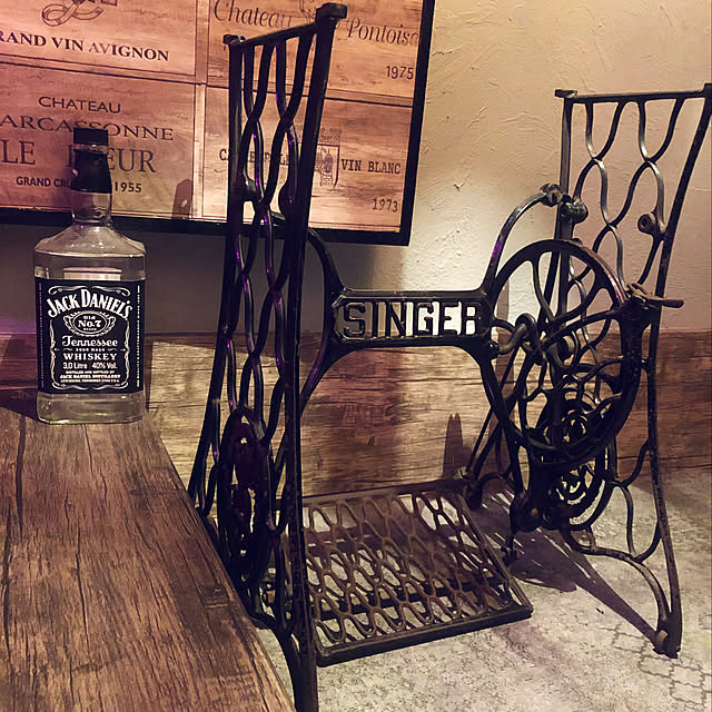 シンガーの脚のみ購入し、テーブルを製作。 机にしたりもできるので、模様替えも楽しみに。 お気に入りのものを使って、オリジナル家具も製作できます。 製作:可ナル舎工房