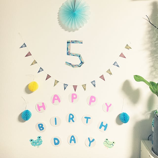 が、今日も一日中息子と公園で遊んでいて家のことが何も出来なかったので、子供が寝た後に泥だらけの服と靴を洗い、最低限の部屋の片付けをして、疲れたからさぁ寝ようと思ったら、そう言えば誕生日らしきセッティングをしていなかった😱と気づいて大慌てて飾り付けしました😅