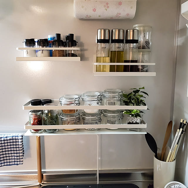 60年を超える歴史ある インテリア雑貨の専門メーカー 山崎実業の代表シリーズ「tower」。 シンプルで、スタイリッシュで 見た目と考え抜かれた機能の高さは、 どのインテリアにも馴染みます(*´ ˘ `*)♡ 私は冷蔵庫横に 🫶🏻 マグネットスパイスラック(W) 🫶🏻 マグネット冷蔵庫サイドラック(W) 他にIKEAのグルンドタール小物入れ ダイソーのフィルター入れ、 セリアのミッフィーマグネットフック 冷蔵庫の横だけがマグネット使えるので 余白も残しつつ最大に使っています(*•̀ᴗ•́*)و