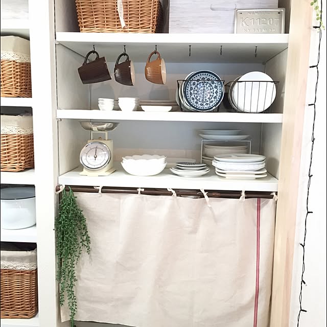 奥のお菓子がのってるストライプのお皿と、もこもこした形のカップはイトウサトミさん