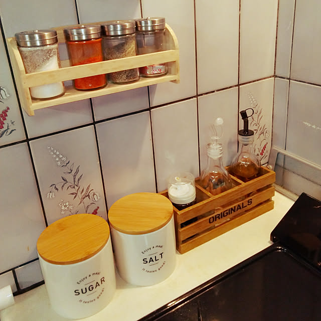 左下のSUGARとSALTの入れ物✨ 最近ダイソーで買いました💕 200円商品だけど、結構大きいので 詰め替えが楽です👌 新商品でもないかも?!