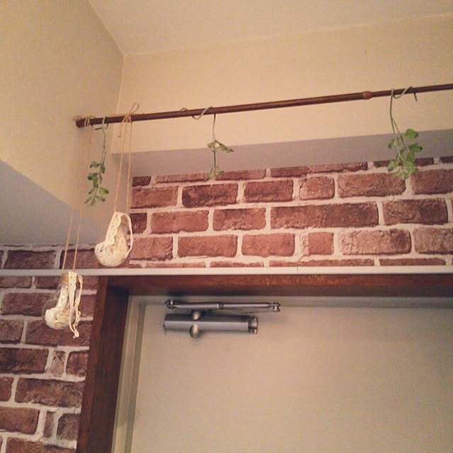 玄関入ってすぐの扉の上に先日やっとこさ手に入ったダイソーのクッションレンガシート貼りました☆ リメイクシートと違ってめちゃ貼りやすかったぁ~(///ω///)♪