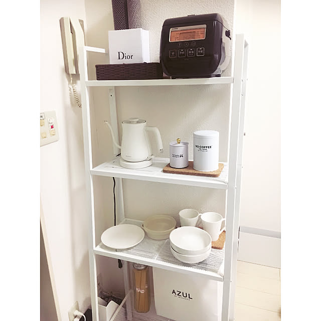 ニトリの棚上に置くのもやってみたけど、取り出しに不便で落ち着いたのがこの場所です。