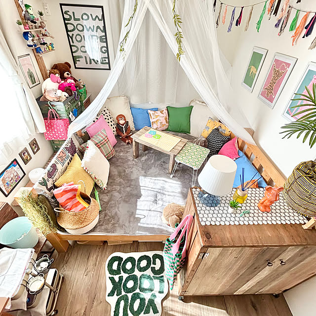 色もたくさん。好きなものを好きなように置いている見てて飽きないダイニング。(多分自分だけ)