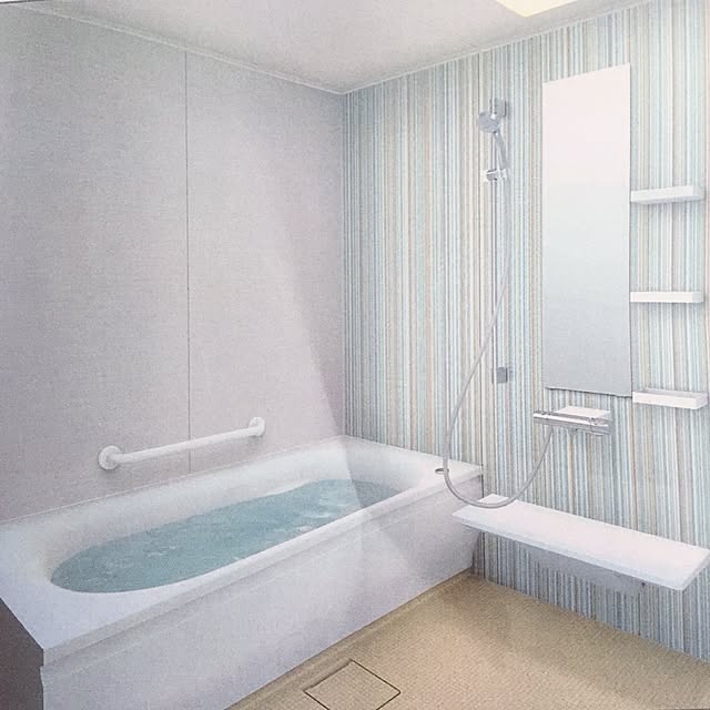 イベント用に再投稿。色々迷ってたけど、実際に展示場に見に行って絶対TOTOのお風呂にする!!と決め手になったほっからり床。なんせ掃除しやすい、汚れ目立たない、柔らかい、あったかい。いいことだらけで大満足でーす!そしてこのパネル、水垢もわからんし、めちゃくちゃお気に入りー!床も石目調のグレーにしてますー★