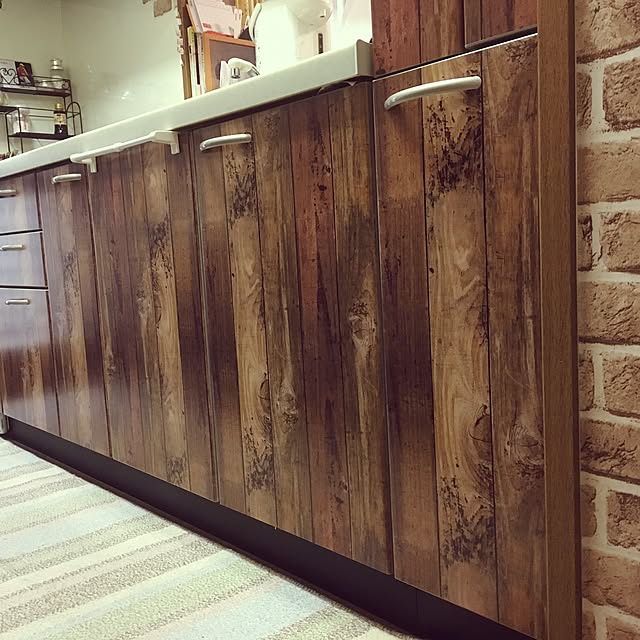 旦那はんが髪染めの液を壁に飛ばして、そこらじゅう汚してくれてたので、壁にリメイクシートを貼ろうと試み……