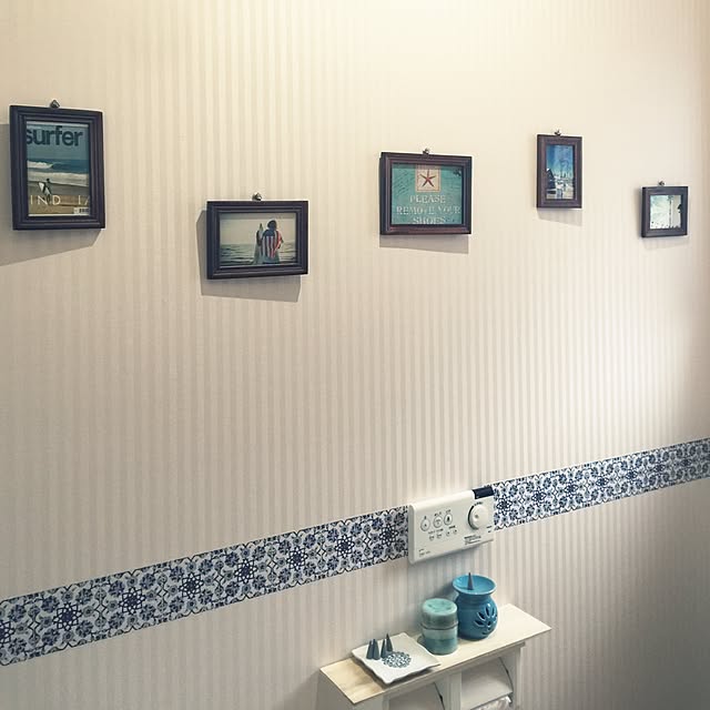 ターコイズブルーの我が家のトイレ 収納がなくて、ニトリで買ったBOXに 入れています;^_^A 絵はボラボラ島で買ってきたものを 前のマンションからの流れでトイレに 狭いトイレだから全体を写すのが 難しい…(^^;;