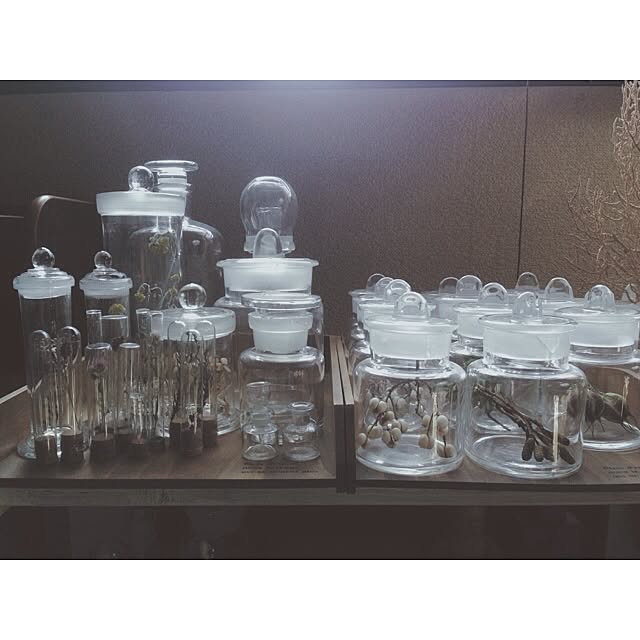 薬瓶やビーカー、原石の水晶のクラスター ・・・大好きな理系インテリアに(*ˊ˘ˋ*)♪