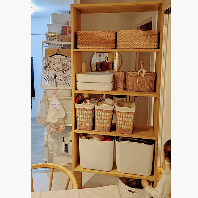 仕事でずっと机の上にパソコン2つと、携帯の置き型電源とemberを置いているのですがそれらの電源がごちゃついてしまい、 電源タップ収納を使っていたんですが、かわいくないので、コンポニビリクローム3とカッパー2を買いました。ごちゃつく電源はコンポニビリの収納の中に入れて線だけちょっと出してます。 (リビングの全体写真で前の収納が見れます) また、仕事で使うイヤホンは、机にフック付きの磁石で引っ掛けてます。 なかなかいい感じになりました。