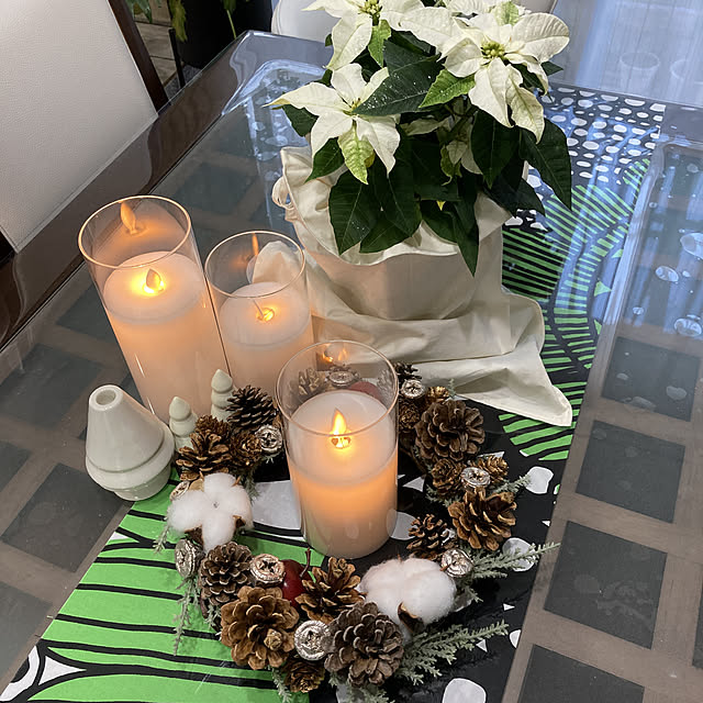 こんばんは꒰*´∀`*꒱ 本日やっと、ハロウィン飾りを片付けました♡ そして、sippoハウスもついにChristmas雑貨を飾りましたよ〜〜Σ(。>艸<。)✨ もう!皆様のお家のChristmas飾りが可愛すぎて、毎日ウズウズ♡ 今日はセリアで、松ぼっくりのリース×2個(左上のリース)←買い占めようか悩みました(笑)ウッドトナカイさん♡、毛糸のツリー、毛玉オーナメント×3個をゲットしてきました〜〜(♡ˊ艸ˋ)♬* 仲良しのフォロワー様から、セリアのChristmas飾りが可愛いって話は聞いていたけど…♡ 本当に可愛い〜〜✨ これ100円!?\(//∇//)\っと頭の中で浮かれてきました♡ Mimiちゃんからいただいた、お家のオブジェはChristmas displayにもぴったりハマってます✨ 可愛いなぁ〜〜❤️