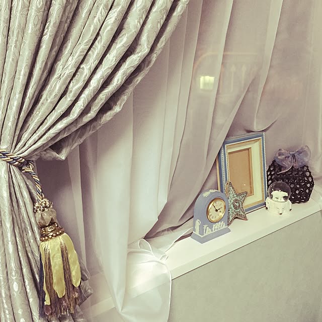 リビングのタッセルは、ボリュームのあるカーテンをまとめられるように大きめな物を カーテンをオーダーした時に一緒に選びました✩࿐⋆* salapearl ちゃんとお揃いで嬉しい(ㅅ´ ˘ `)♡