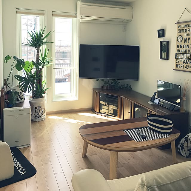 ③テレビがゆったり乗せられるように、テレビボードを横に2台を並べても違和感がない