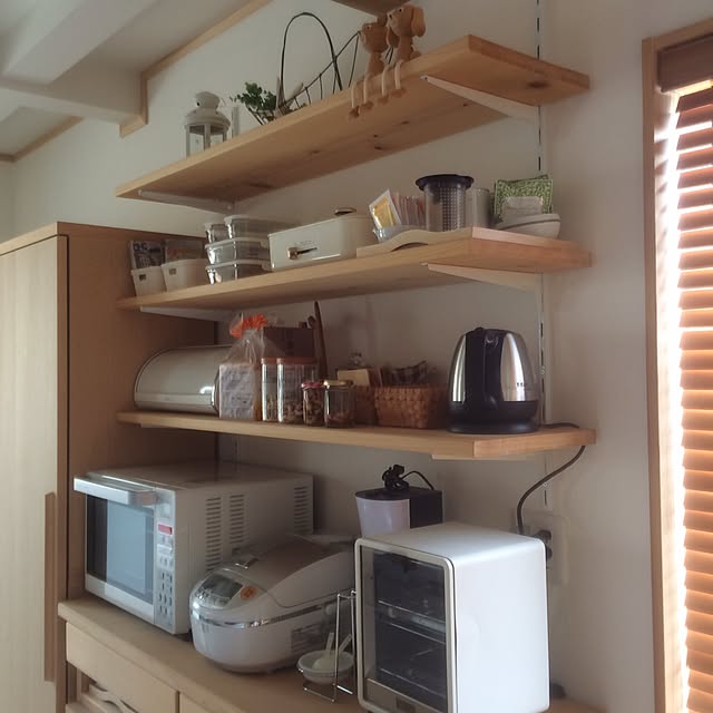 限られたスペースでも置けるようにと縦型タイプのトースターを選びました♡