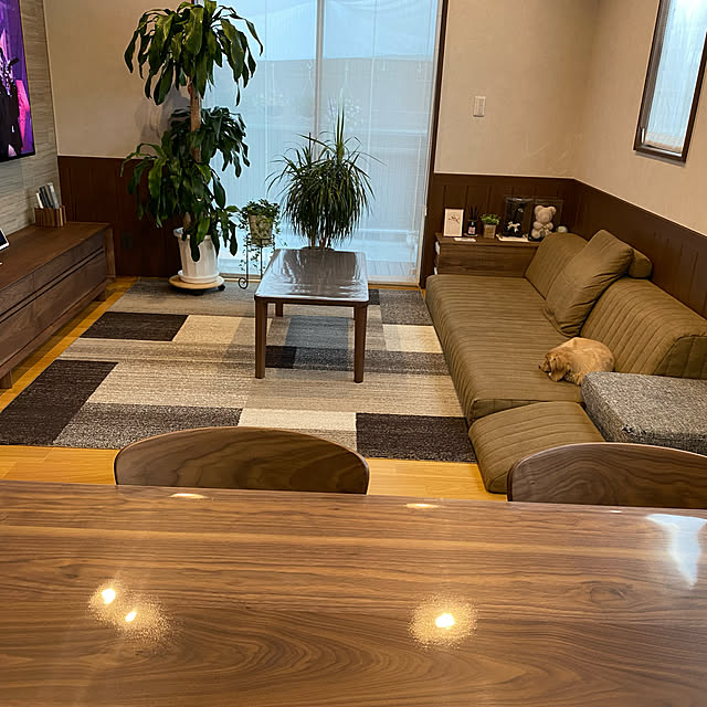 テレビボードの色味と合わせて、ウォールナット色にしました!!
