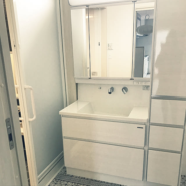 我が家のお風呂は引き戸だったので使えないかなーと思っていたのですがキレイに貼れました⿴カットもできるので足りないところは追加で貼ってます。 引き戸タイプも出ることを祈ってます⸜❤︎⸝‍