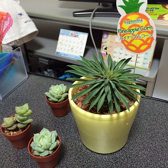 パイナップル、かわいいからしばらく飾っとこ。甘ーい香りがします。