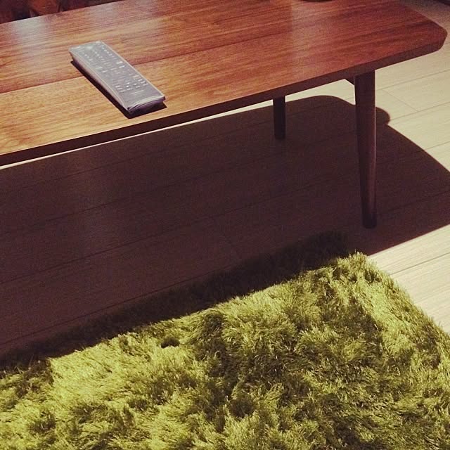 ラグをイケヒコ冬男さん👱‍♂️からイケヒコ春男さん👱‍♂️へチェンジ。 ニトリの豆型こたつは、普通のテーブルとしてもこたつ感なく使えるからとーっっってもお気に入り🥰⭐️ イエロー💛と同じぐらいグリーン💚も好きです🥰
