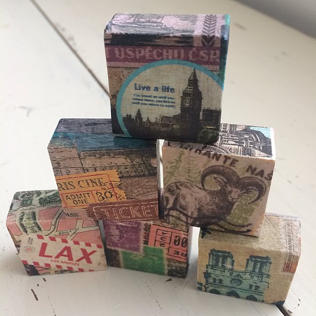 最近はデコパージュにはまり本業のレジンアクセサリー製作をそっちのけでペタペタしてます(*^^*) スマホケースが初めてやったデコパージュで、筆とアルファベットオブジェあたりでコツをつかんできました(笑)筆は防水のノリでコーティングしてるのでいつも放置してガビガビになり使い捨てになってしまいますがちゃんと使う度に洗うようにしますwww 一応机で撮ってるから机のタグつけちゃおう…(笑) 土台の材料はもちろん百均オンリーです(((o(*゚▽゚*)o)))