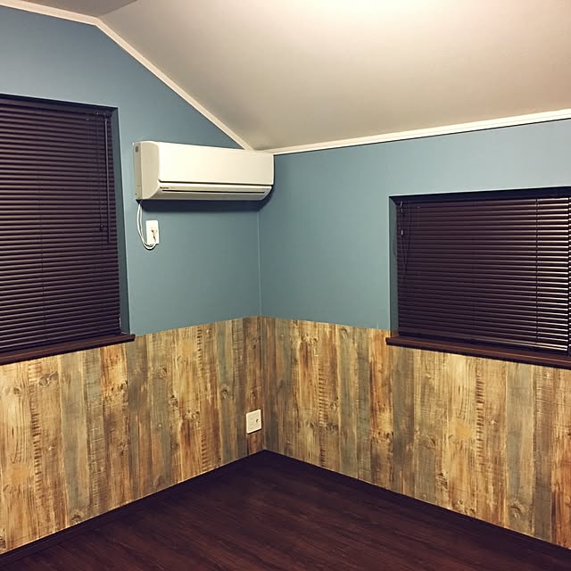 引っ越してすぐに張り替えました。グレイッシュブルーの壁紙とブラウンのカーテンがすごくマッチしていてかわいくて気に入ってます。チョコミントみたい笑