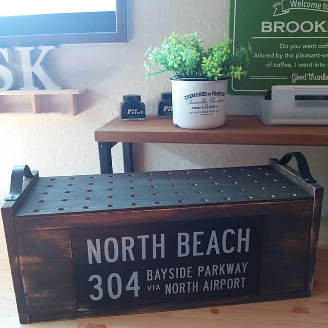 フタを開けた時にキュン♥となれるように、フタ全体を白く塗ってから裏の内枠にセリアのリメイクシートを貼りました♪(2枚目)