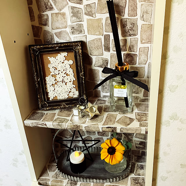 ダイソーのフォトフレームの枠だけの物を飾って、中にお気に入りのドライをマステで貼って、立体お花フレーム〜٩̋(*´ω`*)♡