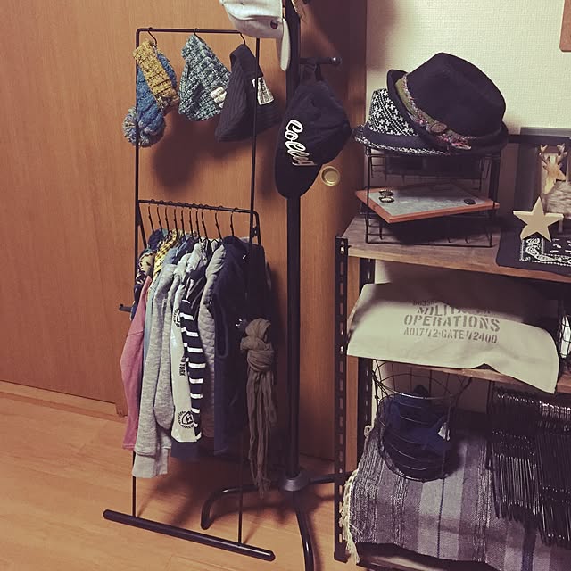 今日、リサイクルショップでポスタースタンドなるものを発見。 イーゼル?みたいなやつ。 美品で500円( ´艸`)買うよねー♪ もちろんポスターなんて飾りませんよ。はい、ありませんから〜w 着替えが嫌いな次男様のためにアウター類と帽子を掛けてみましたヾ(・∀・)ノ 着替え嫌いな子は自分で選ばせるのが良いと聞いたので。。。 これで改善できるかお試しです☆