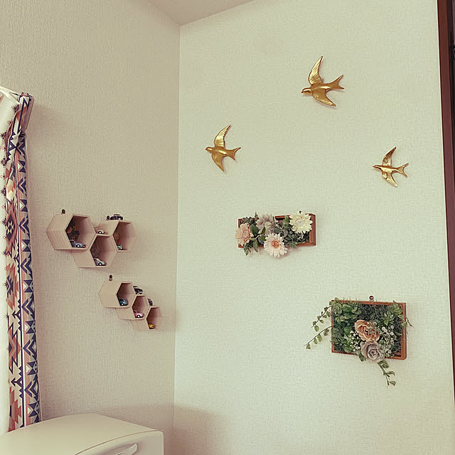 セリアの鳥のオブジェ たくさんの子の中から、顔つきや色の塗り方を末娘が吟味して選んでくれました。 開封した時、末娘が並べたまま、場所を変えてもこのヘキサゴンBOXごとそっと動かしています。 さえずりが聞こえてきそうなほどかわいい💞 本物飼いたいけど飼えないからね〜🐦️🦜