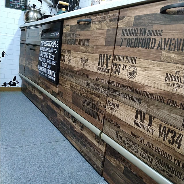 御影石調のキッチンからレンガ調へ。シートを貼りました〜♪ サンプル貼っておいて、剥がしても全然綺麗だったので、安心! 調味料置きの金具とか、少々難しいとこもありましたが。これは優れものです٩(*˘ ³˘)۶❤