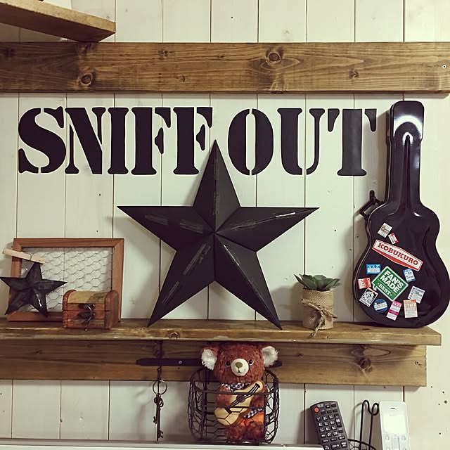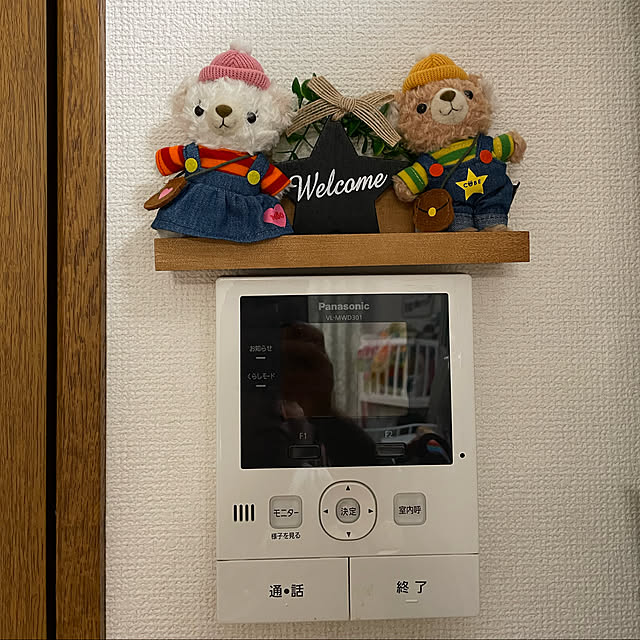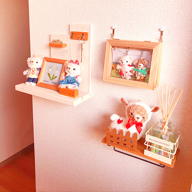 H27.3.30 セリアのワイヤーシェルフを取り付け、大好きなCOBE COBEのぬいぐるみを飾りました♡高い位置だから、1歳の娘にも取られないし安心です♡あとは、3Coinsの英字がプリントされた保冷バックをぶら下げました。この保冷バック、私は白を購入したけど、黒もあって、かっこよかったよ〜!