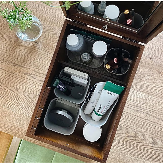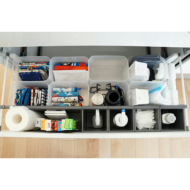 引き出しの中身を整頓 ダイソーの積み重ね収納ボックス(大)が 無印良品のポリプロピレンケース引出式の幅にぴったりでした 病院でもらった薬や市販薬等を 仕切り板で分けて ジップ袋やケースに入れて収納 綿棒が入っているボックスは 下に浅型を重ねていて使用頻度の低い薬を 奥行が何センチか余るので 隙間にも絆創膏のストックを入れています☻