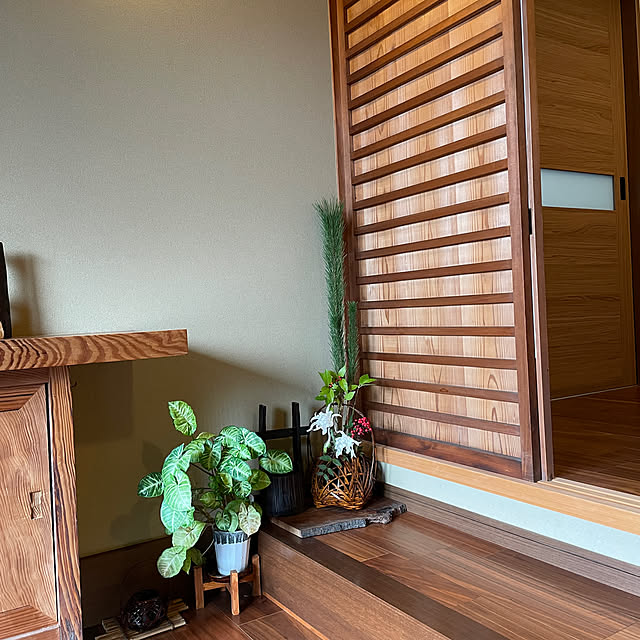 古い下駄箱と隣に並べたおばあちゃんの古い箪笥にお花や盆栽を飾っています。 玄関にお花があると気持ちがぱぁ~っと明るくなります゚+.(・∀・).+゚ お花は産直で野菜を買うついでに買って来ます。 安くて嬉しくなっちゃう( ´艸`)