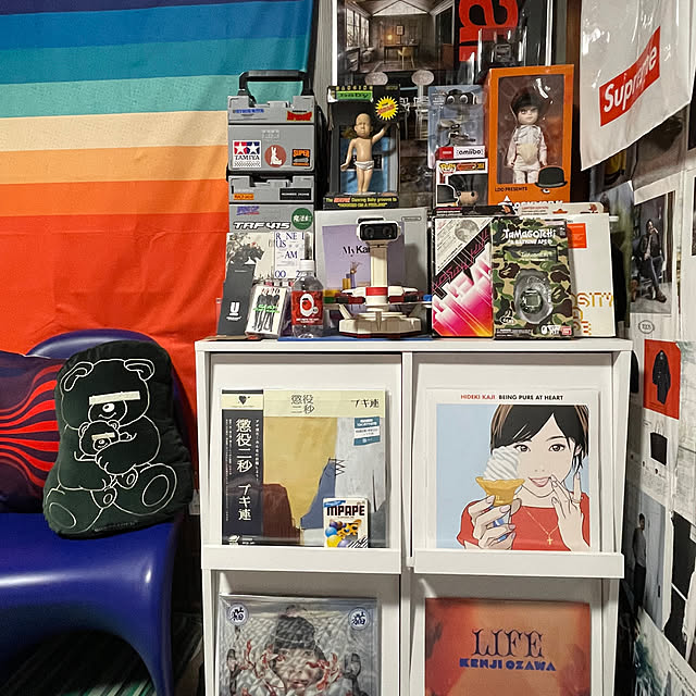 私は完全なるラジオ派なので テレビは娘がアニメを見るためだけにある感じです。 そのため、テレビの存在感をなるべく薄めたくて周りをレコードや本、CDなどでかためてます。 TBSラジオのリスナーさんこの中にいないかな😌