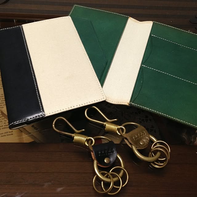 DURAMのキーリングとHIGHTIDEの手帳カバー。一つとして同じものがない経年変化していく革がスキ。。