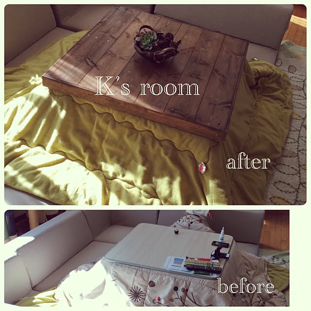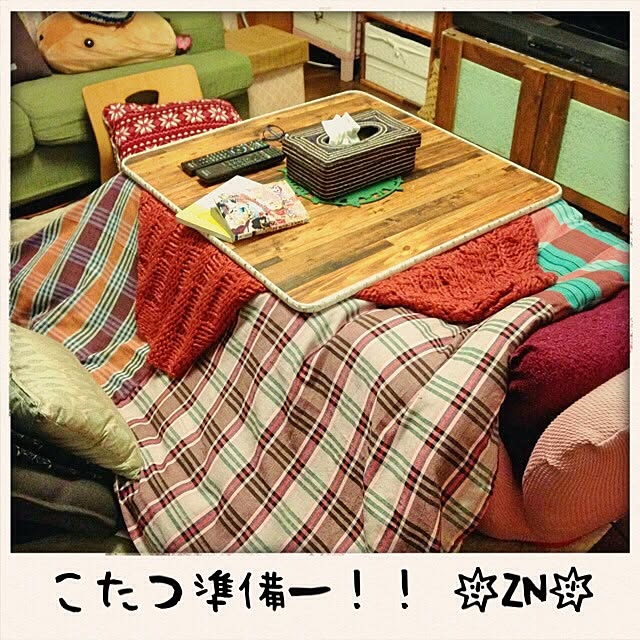 こたつ布団を洗うのが大変なので こたつ布団カバーを購入してみました コの字ファスナーで装着もしやすく、四隅の紐で固定可能 汚れたらカバー取り外して洗濯機へin こたつカバー、もっと早く知ってれば良かったな(*´-`) こたつテーブルは フラットヒーターだからで足も楽々伸ばせます テーブルも両面リバーシブル ローソファーは背もたれの角度が変わるからお昼寝用にも(-.-)Zzz・・・・ 今年も我が家のこたつ生活の始まりです~(*´-`)