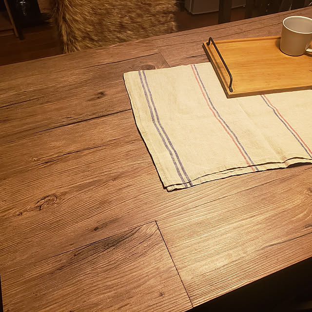 DIYしたベンチには先日unicoで購入した花柄のマットを置きました(*ˊૢᵕˋૢ*)優しい色合いがお気に入り♡ベンチ大きすぎてテーブルに収納できません(笑)