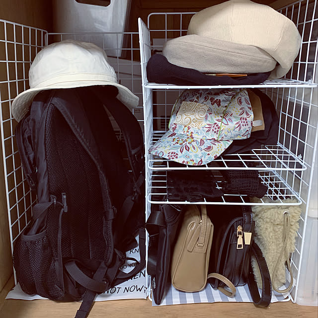 今朝、右壁に突っ張っていた突っ張り棒が 派手に落ちまして、引っ掛けてた物が散乱し、 壁も傷付いて(ToT) 引っ掛けてた者達を何とか収納せねばと 思い立ち、押入れ収納で使わなくなった ワイヤーネットで棚を作ろうとなりました。 そこまで重い物は載せないのでワイヤーネットを 折り曲げるだけでOK(^^) ワイヤーネットの幅がピッタリで最高!