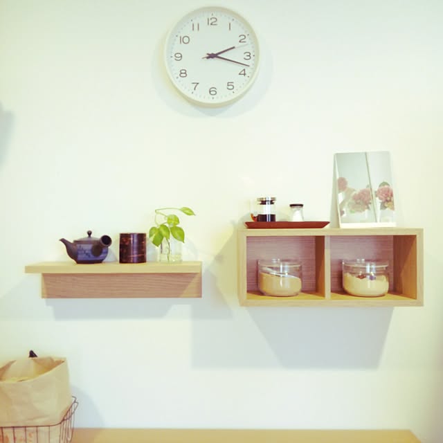洗面台と洗濯機の間にちょうど収まる棚をつけました◎