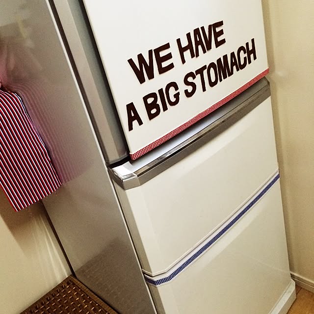 2ヶ月前に買ったばかりの冷蔵庫。 本当は白が欲しかったけど、我が家のキッチンに合うサイズの冷蔵庫がコレしかなくて。。。色を選べませんでした。 新品冷蔵庫にリメイクシートを貼る度胸もないので、ホワイト雑貨でシンプルに飾り付けしています。
