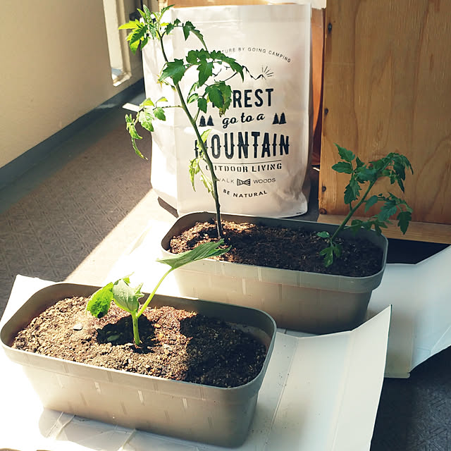 プチトマト、きゅうり、枝豆の苗を買ってきてプランターに植えました☺️