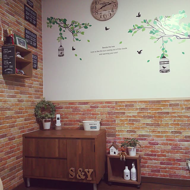 旦那さんが彫り込み部分に合わせて造りました⋆*引き出しもつけてもらいDVDやこどものオムツなども収納できて満足してます⋆*✩⑅◡̈⃝*