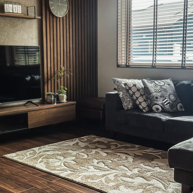 我が家のラグはモニターをさせて頂いた、ikehikoさんの ロザリオ アンティークな柄がお気に入り🫶 床暖対応なのでとても暖かいです☺️