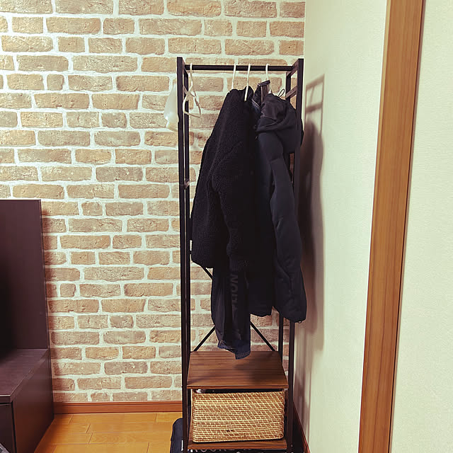 イベ参加&カメラマーク消しです📸 我が家の壁紙はこれ 天井にグレー、リビング正面にはストーン柄の壁紙で、モダンリビング目指してます✨😊