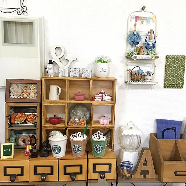 su-sanちゃんから頂いた手作りのスタバのフラペチーノたちをどう飾ろうか迷って1月以上…取り敢えずここに♡引っ越し済んだらショーケース作って飾る予定♪ 一緒に最近作ったワイヤーの立体星を飾りました( ´͈ ᗨ `͈ )◞♡⃛
