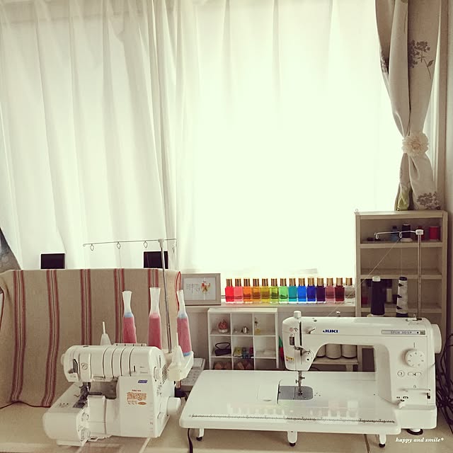 自分の部屋のドレッサーのあった場所に合うサイズの机が見つかったので、ミシンコーナーを作りました。
