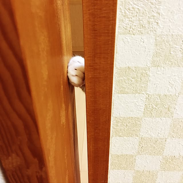 猫に爪研ぎされてガジガジになった角に、今まではレンガを両面テープで貼っていましたが、通る際にぶつかったりで外れてしまうこともしばしば。今回はレンガ柄の壁紙をカットして貼ってみました。