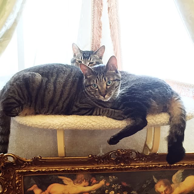 窓、真ん中の物は猫用ウィンドウベッドです。晴れの日はよくここで場所争奪戦してます(笑)