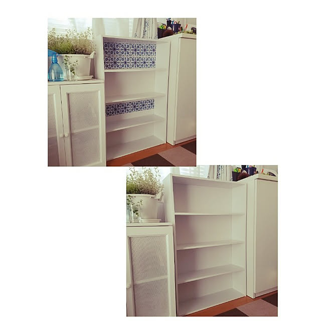 TV台をはがせる壁紙で色を変えました🙌 3時間くらい悪戦苦闘しました🥹💦 近くからは見せられないレベルですが 色は変えられて気分転換出来ました🙌 床と思ってた以上に同じ色で 同化しすぎたかもですが😂 赤ちゃん時代のドアストッパーも外せて 10年経ったTV台もまた新たな気持ちで使えるのでやってよかったです👍