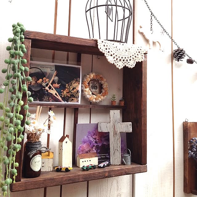 コンテスト応募の為、連投すみません。子供の絵が飾ってある、スペースの下かワンココーナー。ワンコのトイレ兼お留守番ゲージをどうしても隠したくて、すのこを使ってカバーをつくりました。その横の棚は、ワンコグッズを入れる棚。その横の茶色のBOXはリサイクルショップで、800円ぐらい。子供のおもちゃが入っています。子供が少し大きくなってきたので、リビングにあったおもちゃは、子供部屋に持っていってもらいました。でもリビングで遊ぶことが多いので、持ってきたものは、カゴやBOXに一時的にしまってもらい、後で、まとめて、自分の部屋に持って行ってもらいます。