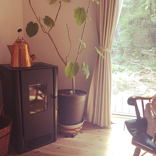 朝日が家の奥まで入るこの季節。 奥行きのある我が家には嬉しい季節♪ 新調したケトルも良い感じ♡ しっかり加湿してくれています。