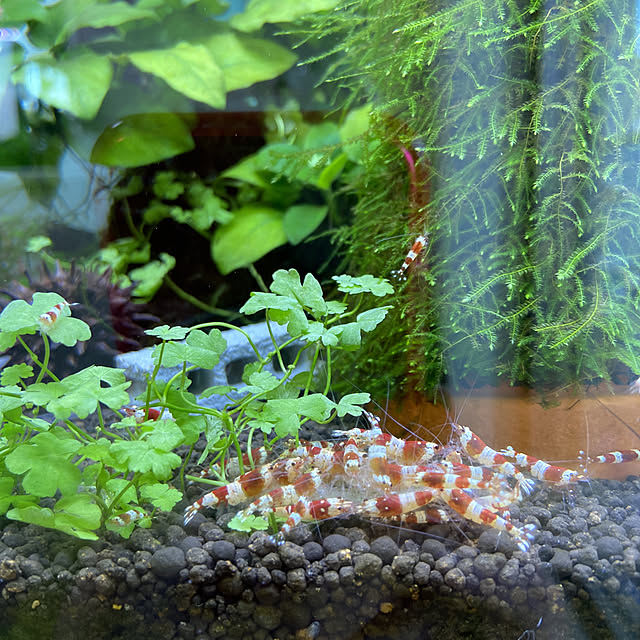 私の家族。 レッドビーシュリンプ水槽です。 今は30匹、そのうちママさんが7匹もいます。 これからが楽しみだなぁ。